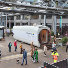 Nacelle van een windturbine getransformeerd tot compacte woning.